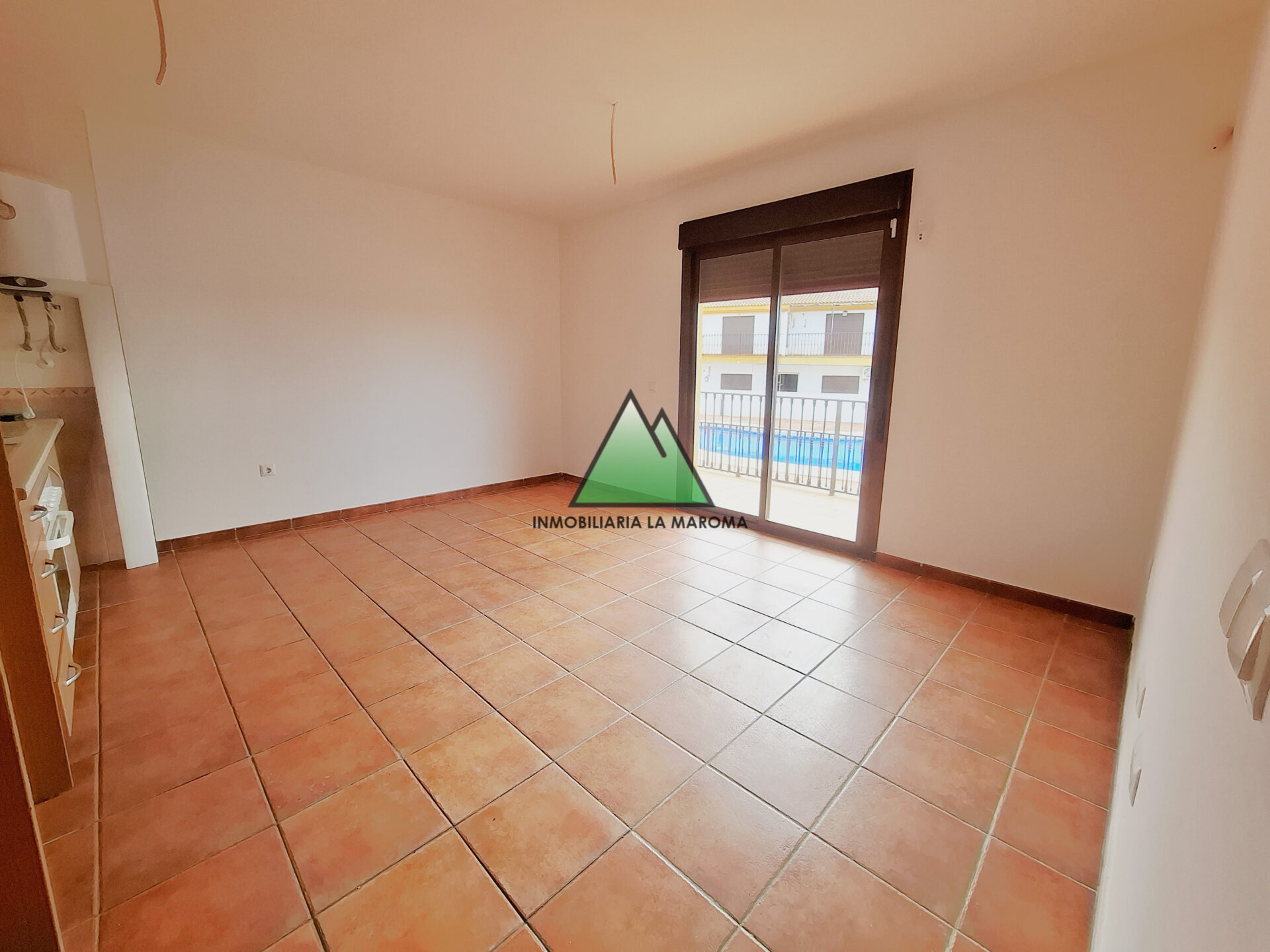 ¡OPORTUNIDAD! LA MAROMA REAL ESTATE pone a la venta apartamento de 56 m2 distribuido en un salón comedor con cocina equipada y acceso a una amplia terraza con vistas a la zona de la piscina y de la montaña. También cuenta con un baño completo independiente y un dormitorio con armario empotrado. Su precio incluye además una plaza de aparcamiento en el parking comunitario del mismo.