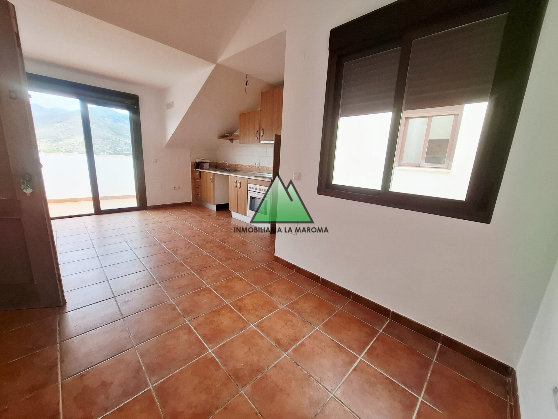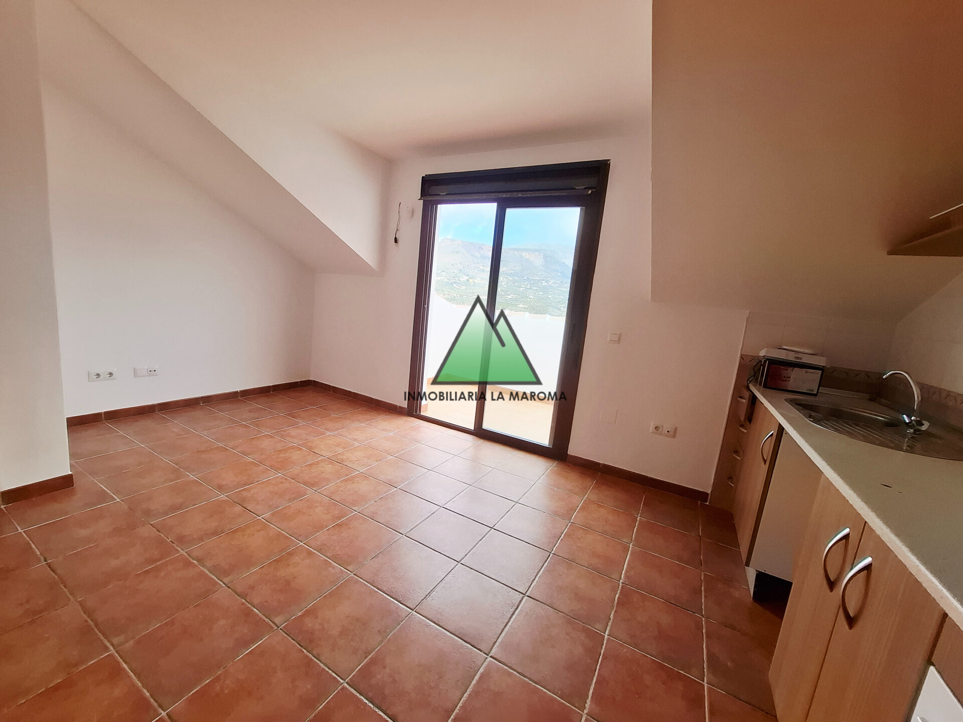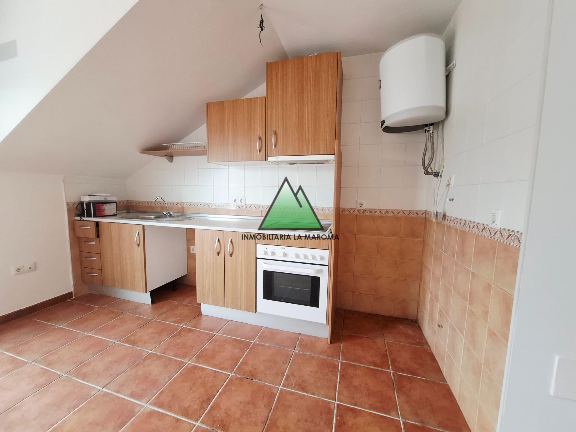 ¡OPORTUNIDAD! LA MAROMA REAL ESTATE pone a la venta apartamento ático abuhardillado de 56 m2 distribuido en un salón comedor con cocina equipada y acceso a la terraza con vistas a la montaña. También cuenta con un dormitorio con baño en suite. Su precio incluye además una plaza de aparcamiento en el parking comunitario del mismo.