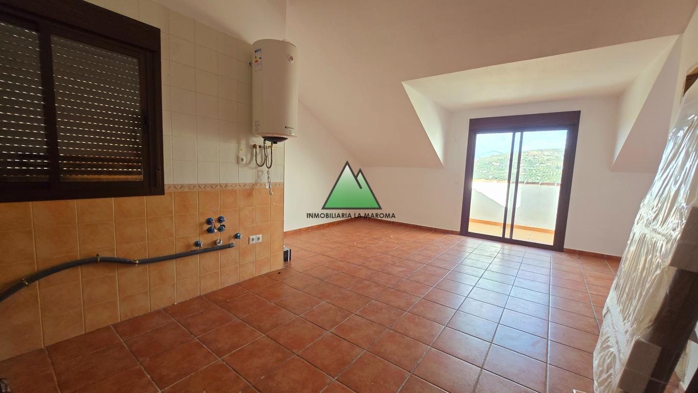 ¡OPORTUNIDAD! LA MAROMA REAL ESTATE pone a la venta apartamento dúplex de 101 m2 distribuido en planta baja, cocina abierta sin amueblar, salón-comedor, dormitorio abuhardillado y una terraza con vistas a la montaña; entre planta, donde su ubica el primer baño completo, y, planta alta, donde se sitúa un dormitorio doble con baño en suite.