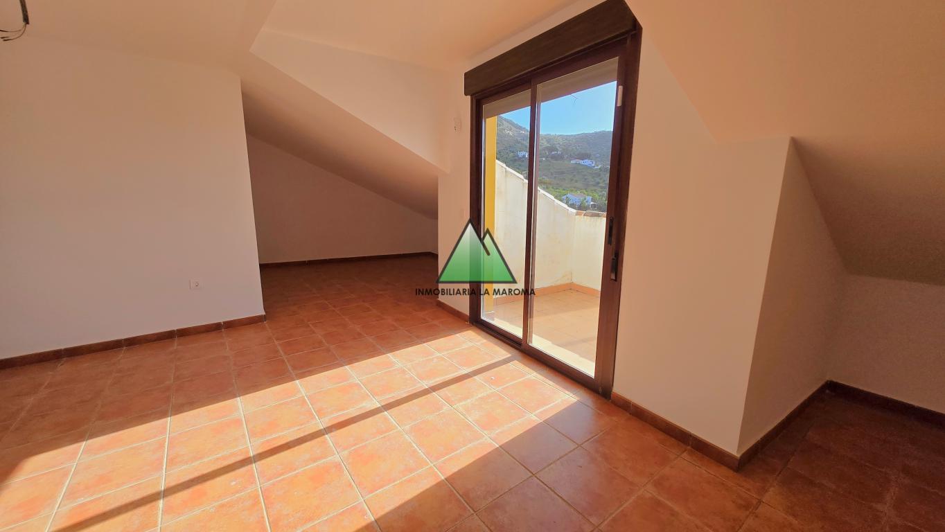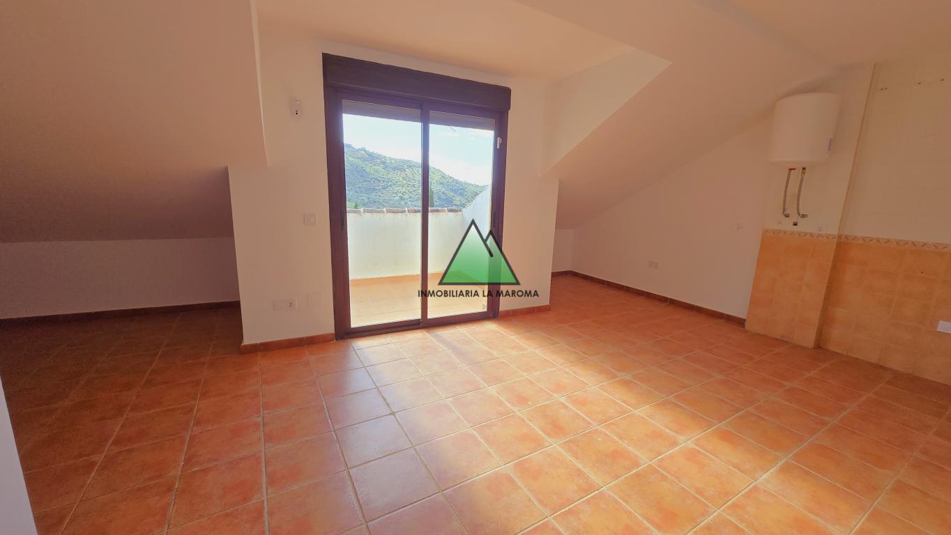 ¡OPORTUNIDAD! LA MAROMA REAL ESTATE pone a la venta apartamento abuhardillado de 55 m2 distribuido en un salón comedor con cocina abierta y acceso a una terraza privada con vistas a la montaña, 1 dormitorio y un baño independiente. Su precio incluye además una plaza de aparcamiento en el parking comunitario del mismo.