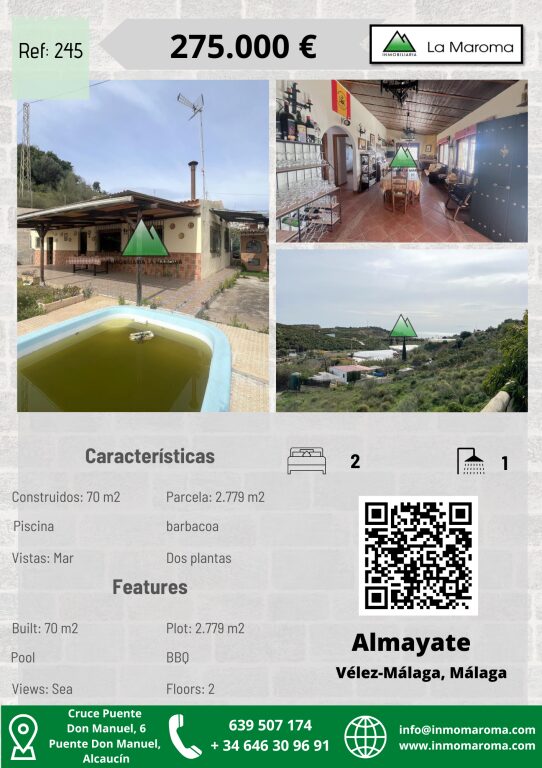 Si lo que buscas es comodidad, cercanía y una vivienda con un gran potencial. Llámanos al 639 507 174 o escríbenos a info@inmomaroma.com para concertar una visita.